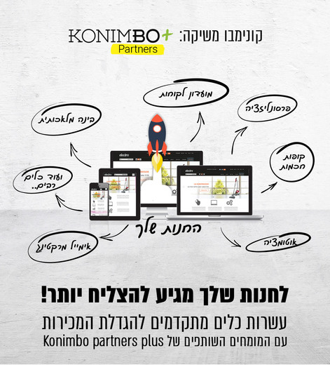 לקוחות יקרים אנו ממשיכים לשפר ולעדכן את המערכת. בהמשך למהפכה שיצרנו עבורכם לפני שנתיים שבה השקנו את המערכת ההיברידית המאפשרת לכם ליהנות מיתרונות הקוד הפתוח והקוד הסגור אני רוצה להכריז על מערכת חדשה שיצרנו עבור הצלחת החנות שלכם: Konimbo Partners Plus. כל הפרטים כאן ↓. |